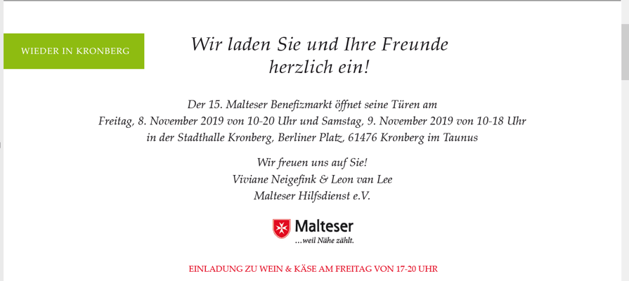 Wir laden Sie herzlich zum 18. Malteser Benefizmarkt ein.